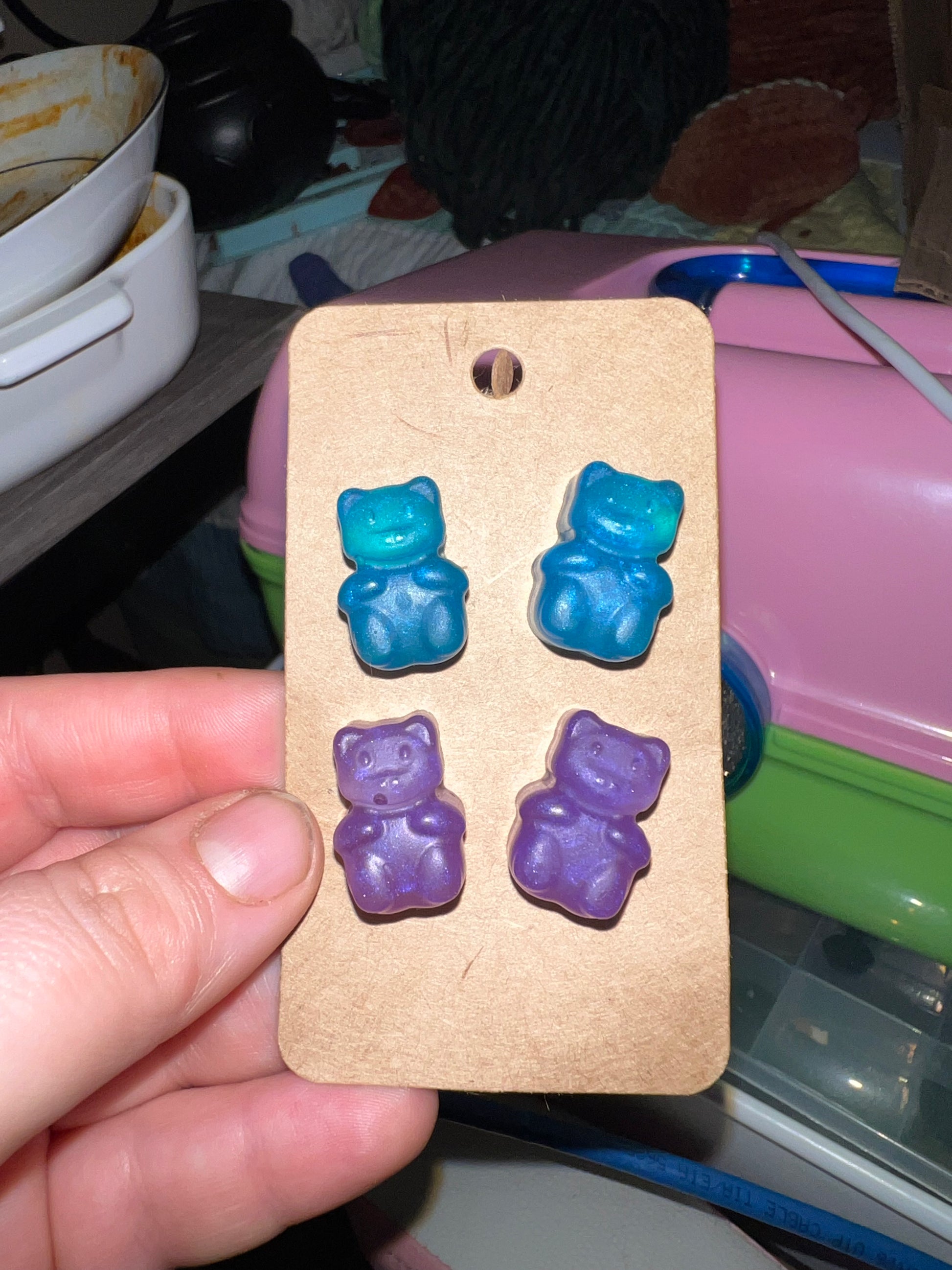 These earrings are made of epoxy resin, hypoallergenic nickel earrings, and lots of love and attention! Each pair is handcrafted by Maddie herself!